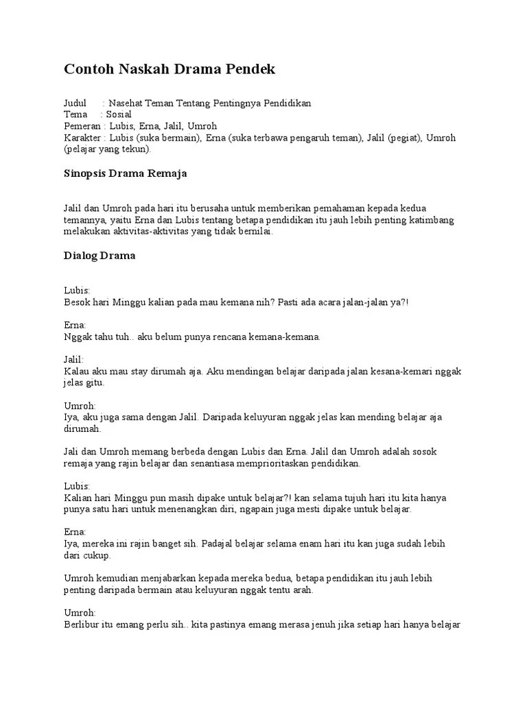 Suatu pagi pada jam istirahat . Contoh naskah drama anak sekolah 7 orang . Berikut cuplikan drama bertema pendidikan yaitu. Lencana tidak terkunci yang menunjukkan sepatu bot astronot mendarat di bulan. Buatlah cuplikan drama bertema pendidikan.