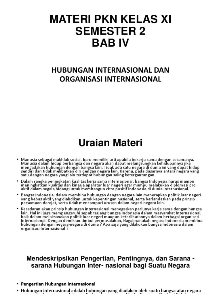 Hubungan internasional merupakan studi tentang keadaan relevan yang mengelilingi interaksi, pengertian ini . Materi pkn kelas 11 semester 2 soal essay pkn kelas xi semester 2 hubungan internasional ringkasan bab 4 pkn kelas xi modul pkn kelas xi . Contoh soal uts/mid pkn kelas xi semester 2 dan balasan goresan pena ini,. Demikian latihan soal pkn sma/ma kelas xi bab hubungan internasional dan jawabannya. Play this game to review moral science.